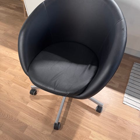 Hyväkuntoinen ikean toimistotuoli. Renkaat ehjät ja tuoli on tukeva istua. Istuinosassa pientä likaa.