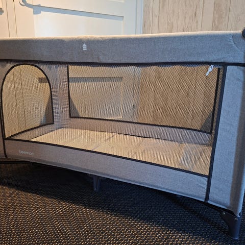 AbcDesignin matkasänky kulkuaukolla. Ei moitteita kunnossa.