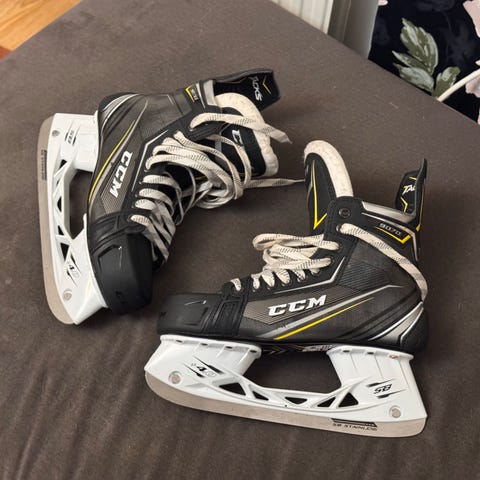 CCM 92X jääkiekkoluistimet, koko 42. Väri musta-valkoinen sinisillä yksityiskohdilla. Nauhakiinnitys. Terä pidikkeessä, jossa useita kevennysreikiä. Soveltuvat jääkiekkoon ja yleiseen luisteluun. Koko ilmoitettu kengän sisäpuolella (EU 42).