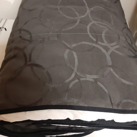 120cm leveässä sängyssä käytetty päiväpeitto, mitat noin 180×250cm.