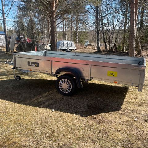 JJ-trailer 6000 peräkärry. Uudet kesä ja talvirenkaat vanteilla. Uutta vastaava kärry. 2 kertaa vedetty Rovaniemeltä Muonioon ja takaisin. Muuten ollut lähinnnä työmaavarastona.