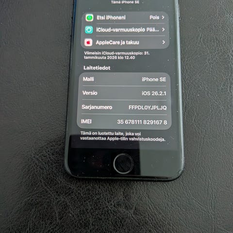 - Puhelin tyhjennetty ja asennettu uusin IOS 26.2.1
