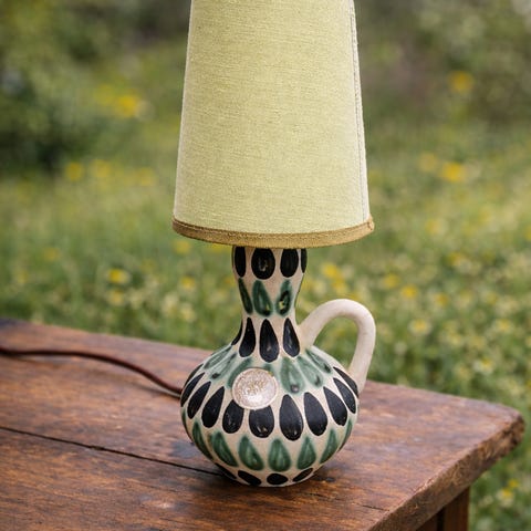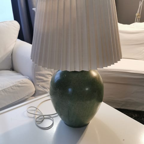 Kupittaan Saven vanha priimakuntoinen pöytävalaisin. Korkeus lampun kanssa 35cm, pohjan leveys 12cm. Vain nouto Hervannasta.