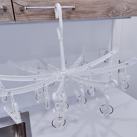 Teline jossa säilyttää ja kuivata keittiörätti. Välttää rätin pyörimistä hanan päällä ja lian levittämistä.