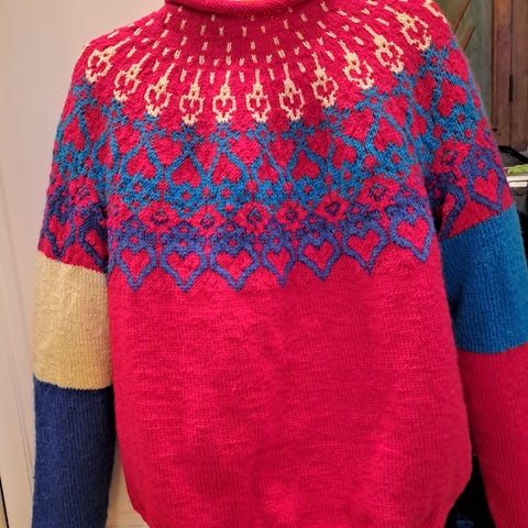 Villapaita on itsekudottu. Lanka on 7-veljestä. 75 % villaa ja 25 % polyamidia.