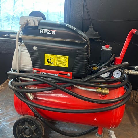 Ilmakompressori, säiliötilavuus 50 litraa.