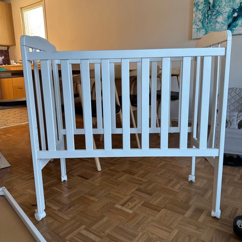 Myydään todella hyvässä kunnossa oleva valkoinen JLY Alice Dream pinnasänky. Sänky on liikuteltava jaloissa olevien pyörien ansiosta, jotka voi myös lukita paikoilleen. Mukaan kuuluu Babydan-patja. Pohjan korkeutta voi säätää.