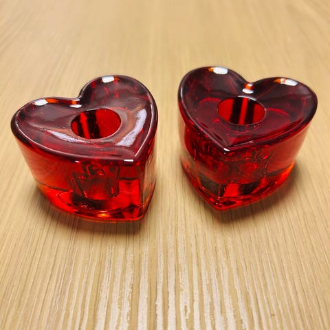 2 kynttilänjalkaa, vihreä reuna. Pieniä virheitä lasituksessa, ovat 2-laatua. Pentikin mallistoa vuodelta 1997.