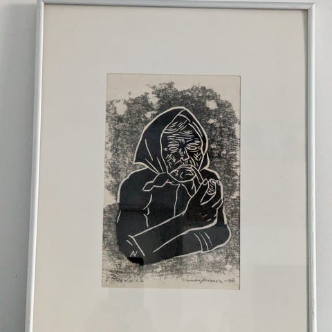 Veikko Arosara - Jumppa (Signeerattu Puupiirros 1972)