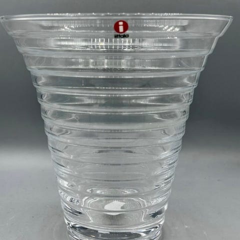 Iittalalle Kerttu Nurmisen suunnittelema Marlene-maljakko mustaa lasia. Muodoltaan pyöreä ja porrastettu, sopii kukka-asetelmiin tai sisustusesineeksi.