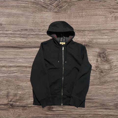Burberry huppari miehille, koko XS. Harmaa vetoketjullinen malli, jossa kiristettävä huppu. Hupun vuorissa Burberryn tunnusomainen ruutukuosi. Materiaalina puuvilla. Soveltuu arkikäyttöön ja kerrospukeutumiseen.