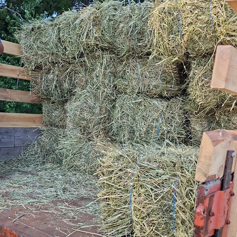 Heinäpaalin syöttölaite katoksella metallia