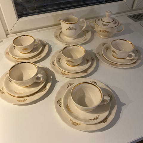 Arabia kahviastiasto kultareunainen valkoinen posliini