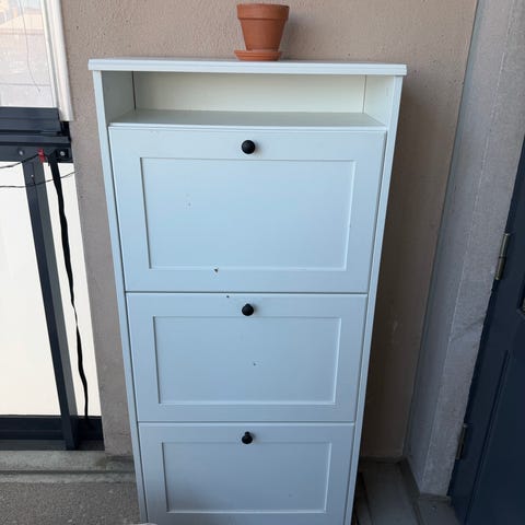 Harmaat, perussiistit kenkähyllyt. Näppärät pieneenkin eteiseen.