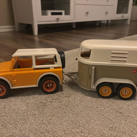 Erittäin hyväkuntoinen hepan kuljetusvaunu ja auto + muut settiin kuuluvat tykötarpeet. Kokoamisohje mukaan.