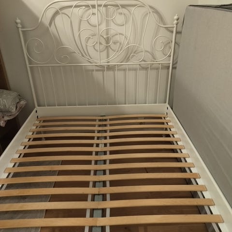 Matala sängyn runko, hyvä pinnasängystä pois siirtymiseen, laita tehty itse, paikka ei vaihdettavissa, liimattu.