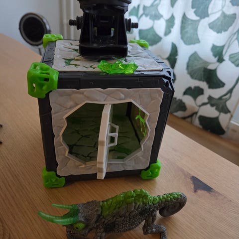 Hämähäkki ja sen häkki. Mukana pallo. Vähän leikitty