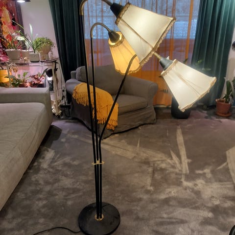 Myydään ihana retro jalkavalaisin, metallirunko jossa ruskea metalli varjostin, painava, korkeuden säätö mahdollisuus, 55€, Kemi mmm