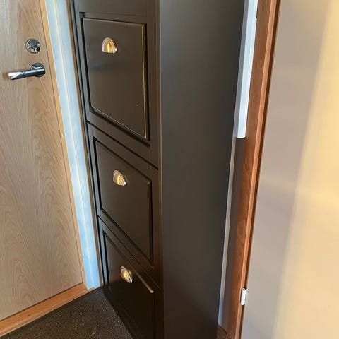 Jyskin kenkäkaappi. Ylhäällä vetolaatikko tavaralle, sekä kaksi hyllykköä kengille. Kuin uusi.