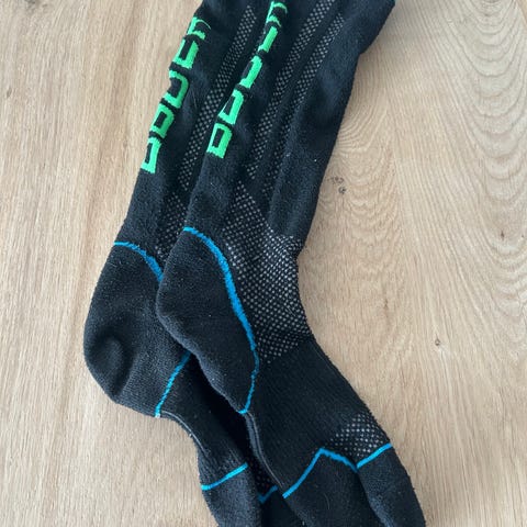 Jääpallo sukat sininen. Pitkät siniset jääkiekkosukat, joissa keltaiset kuviot varressa. Soveltuvat jääpallokäyttöön tai muuhun urheiluun, jossa tarvitaan pitkiä sukkia.