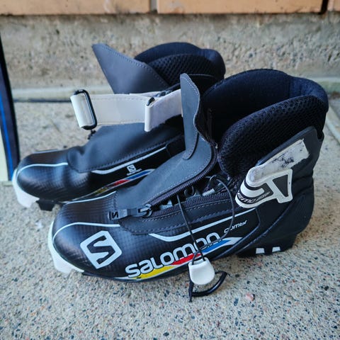 Naisten valkoiset Salomon Vitane 8x skate hiihtomonot, joissa on SNS pilot kiinnitys järjestelmä. Monojen koko on 38 ⅔.