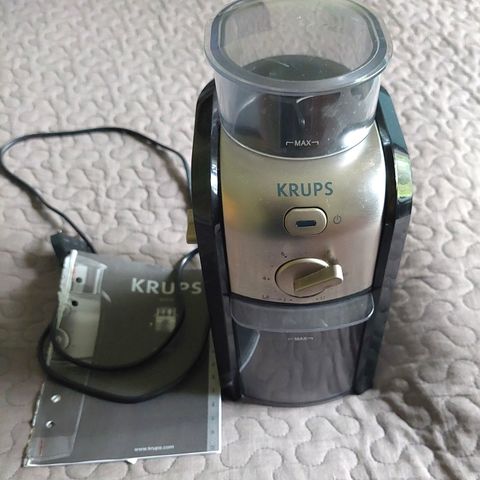 Krups 75 -sähkökäyttöinen kahvimylly. Valkoinen runko ja läpinäkyvä kansi, johon integroitu käynnistyspainike. Laitteessa on verkkovirtajohto suomalaisella pistotulpalla. Soveltuu kahvipapujen jauhamiseen kotikäytössä. Malli on kompakti ja helppo sijoittaa keittiön tasolle.