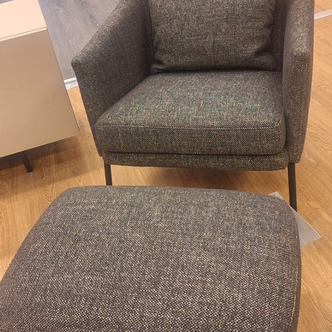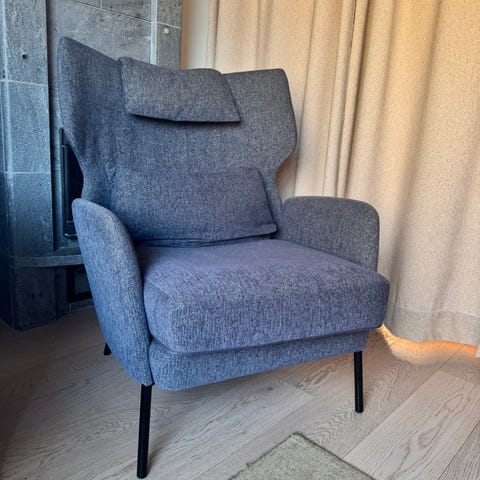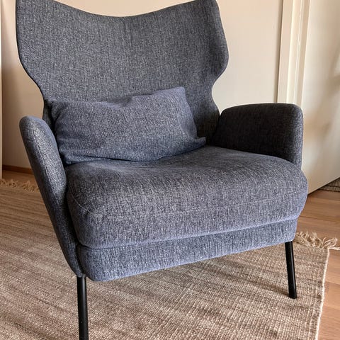 Hyväkuntoinen myymälämalli edullisesesti. Siri-nojatuoli on kiintoverhoiltu mustalla aniliininahalla. Aniliininahka on nahoista ylellisin, pehmein ja paksuin. Sitä on käsitelty vain vähän ja sen pinta on huokoista. Tuolissa on mustat metallijalat. Istuinkorkeus 42 cm. Ovh. 2358 €.