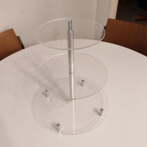 Myydään 5.kerroksinen hääkakkuteline. Leveydet 20, 25, 30 ja 35cm. Tasojen välit 17cm.Nouto Epilästä