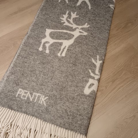 Pentik 100% villa, porokuvioitu 130cm X 170cm torkkupeitto / viltti. Myyn paketissa olevan, täysin uuden. Peitossa on kaksipuoleinen porokuviointi ja hapsureunat. Ovh. 149:-