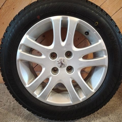 Myydään Peugeot-autoon sopivat renkaat vanteilla.
