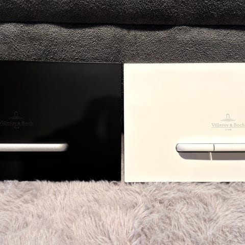 Villeroy & Boch ViConnect WC-huuhtelupainike. Malli 922169AN. Väri musta, krominväriset painikkeet. Tarkoitettu seinä-WC:n huuhtelun ohjaukseen yhteensopivan Villeroy & Boch ViConnect -asennustelineen kanssa. Sopii kaksoishuuhteluun (pieni ja suuri huuhtelu). Materiaali ja mitat pakkauksen tietojen mukaisesti.