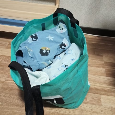Kassillinen poikien vaatteita koosta 68-80, muutama isompi on joukossa.