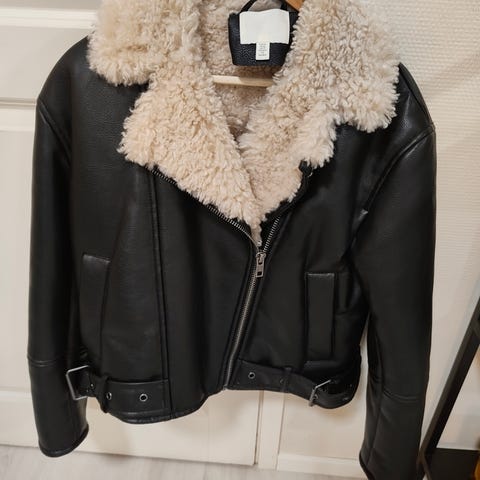 Hyvässä kunnossa, pientä nukkaa/karvoja löytyy. Hihat tekonahkaa.