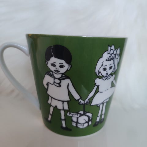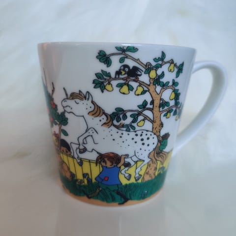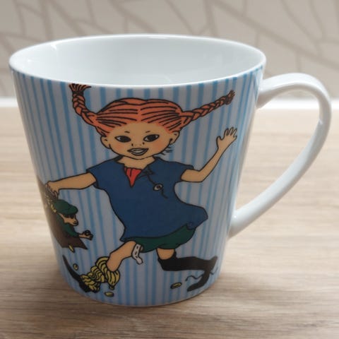 Virheetön Rörstrand Peppi Pitkätossu keltainen muki. Vetoisuus 2 dl. Pippi Långstrump, Astrid Lindgren & Ingrid Vang Nyman / Saltkråkan Ab