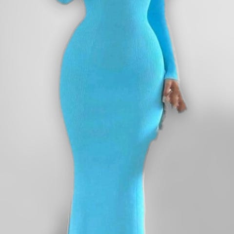 Uusi kaunis turkoosin sävyinen neulemekko hopeisella korulla, M