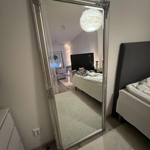 Jysk kokovartalopeili, jossa luonnonvalkoinen koristeellinen kehys.