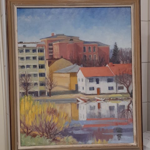 Hieno vaikuttava, Sulo Salmen öljyvärimaalaus "Sininen nainen" vuodelta 1952. Hyvä kunto. Koko kehyksineen 64,5 x 55 cm, kangas 50 x 40,5 cm.
