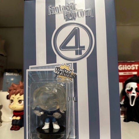 Fantastic Four kannellinen peltirasia keräilyhahmolla (irroitettava). Käyttämätön. Koko 26cm x 17cm x 10cm.