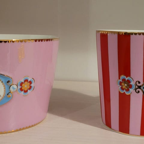 Virheettömät, kauniit Pip Studio mukit (4 kpl) kultaisin yksityiskohdin. Vetoisuus 2 dl.