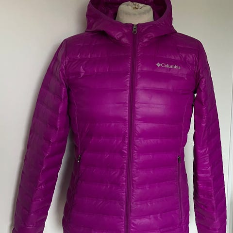 Columbia kevyttoppatakki heijastavalla vuorella. Täytteeseen nähden todella lämmin heijastavan vuoren ansiosta. Siisti. Koko M.