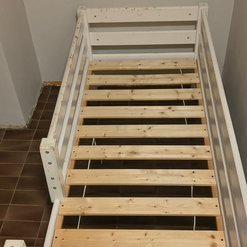 IKEA puinen sänky. Sängyssä on puiset sälepohjat, pituus säädettävissä 120-200 cm (IKEA Sultan Lade). Täysin ehjä ja siisti, pientä kolhua ja tahraa siellä täällä. Ei patjaa. Vain nouto.