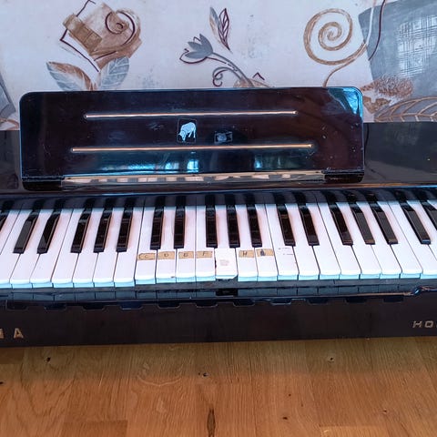Laukussa kulkeva Hohner Organa 9807 suoraan 60-luvulta. Toimiva ja hyvänkuuloinen peli. Tällä on äänitetty ja soiteltu kotona, mutta nyt on tilalle tarve.