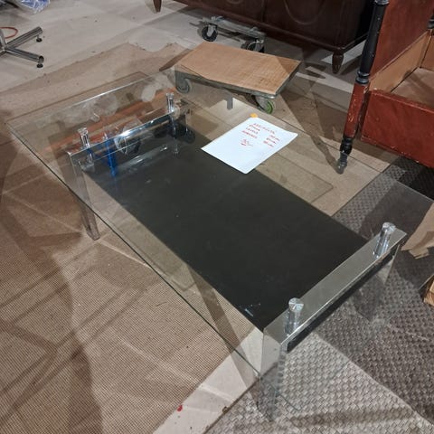 Kuvien mukainen lasipöytä kasattuna. Jalkaosa ja kansi erilliset osat - 2 osaa. Jalkaosakin purettavissa.
