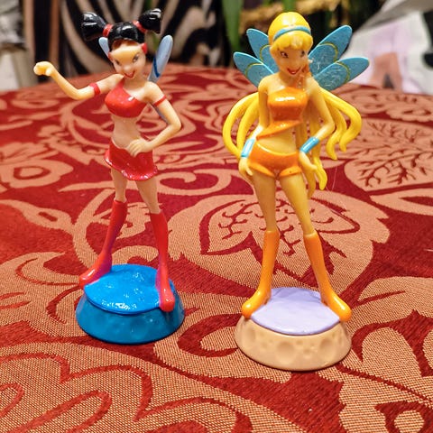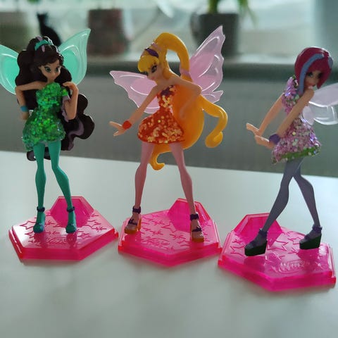 Winx Club Tynix nuket: Tecna, Musa, Flora, Aisha, Stella ja Bloom.