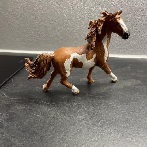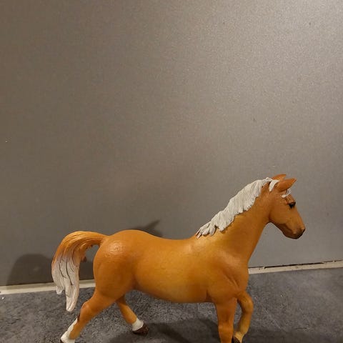 Erityisen hyvänkuntoinen pieni vaalea Schleich ori. Ei värivirheitä/kulumia. (Etu kavio-korvan pää 7,5cm, häntä-turpa 10cm, leveys selän päältä 2cm). Nouto Lohikoski (mahdollinen lähetys R-kioskin kautta 5e+hevonen)