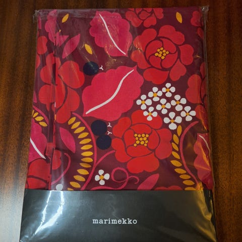Marimekko ruhtinatar vahakangasliina. Säilytetty rullalla, ehjä, puhas. Pieni vika toisessa päässä 70cm kohdalla, näkyy kuvissa. Käyttämätön.