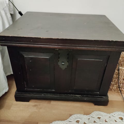 Akaasiasta valmistettu arkkupöytä. Ostettu yhdysvalloista. Sisällä paljon säilytystilaa!