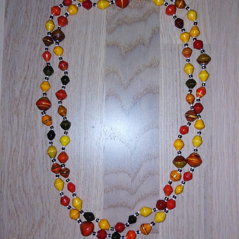 Kaunis Caring Hands kaulakoru, kokonaispituus n. 103 cm. Käsityötä, hyväkuntoinen.