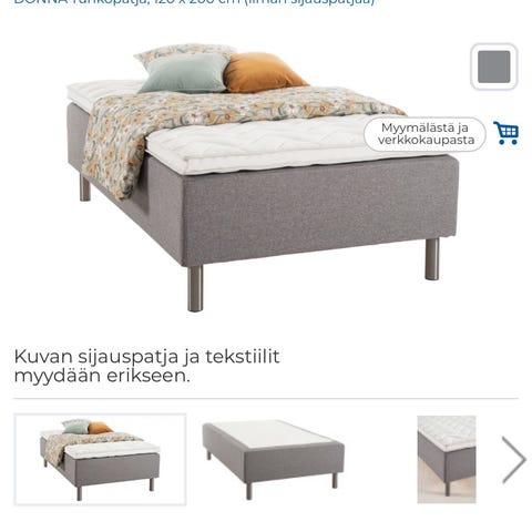 IKEA Alexander jenkkisänky tummanharmaalla verhoilulla. Sängyssä on valkoinen nukkumapinta ja tummanharmaat reunat. Runko on verhoiltu kankaalla ja sängyssä on puiset jalat. Sopii yhden hengen sängyksi makuuhuoneeseen tai vierashuoneeseen. Tarkemmat mitat ja kovuusaste eivät käy ilmi, joten ne on hyvä varmistaa mittaamalla paikan päällä.