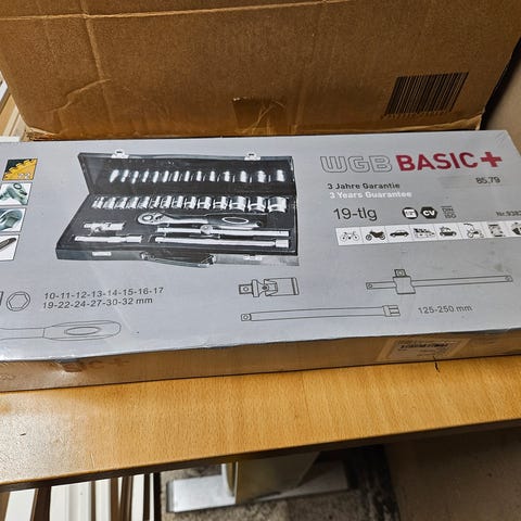 hylsy- ja räikkävälinesarja, 219-osainen. Sarja sisältää useita erikokoisia hylsyjä, kolme räikkävääntintä, jatkovarsia, niveladaptereita, ruuvauskärkiä sekä kiinto- ja lenkkiavaimia. Työkalut on sijoitettu kovaan kantosalkkuun, jossa jokaiselle osalle on oma paikkansa. Soveltuu erilaisiin ruuvaus- ja korjaustöihin esimerkiksi auto- ja konehuollossa sekä kotitalouden yleisiin huoltotöihin.